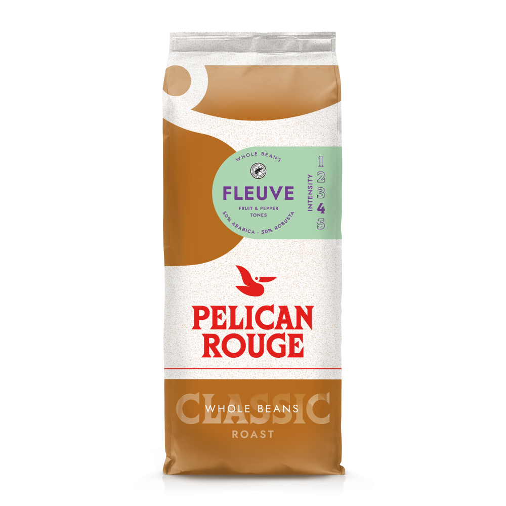 Pelican Rouge vine in intampinarea iubitorilor de cafea cu numeroase sortimente printre care si cafeaua boabe Fleuve care contine 50% Arabica si 50% Robusta.