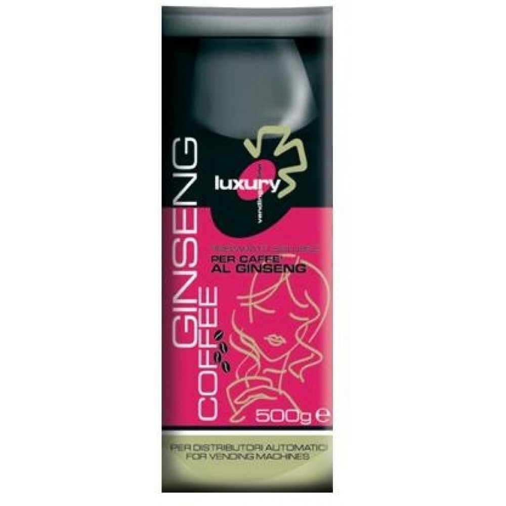 Cafeaua instant Luxury cu ginseng contine: zahar, lapte instant spumat, cafea solubila (8%), ginseng (0,35%), caramel, arome (poate contine urme de gluten sau soia).