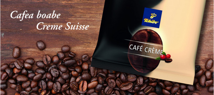 Cafeaua Crème Suisse este conceputa special pentru aparatele de cafea. Ea este ambalata in punga de 1 kg.