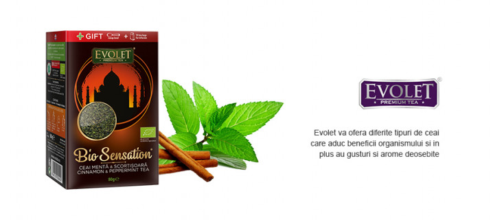 Ceaiul Evolet cu menta si scortisoara imbina doua gusturi diferite pentru o aroma de neuitat.