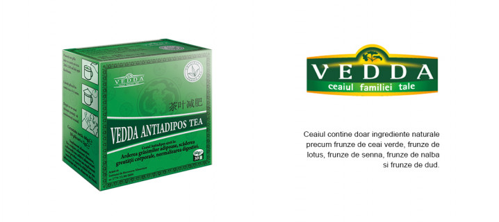 Ceaiul antiadipos, de la Vedda, face parte din gama produselor folosite pentru eliminarea surplusului de greutate.